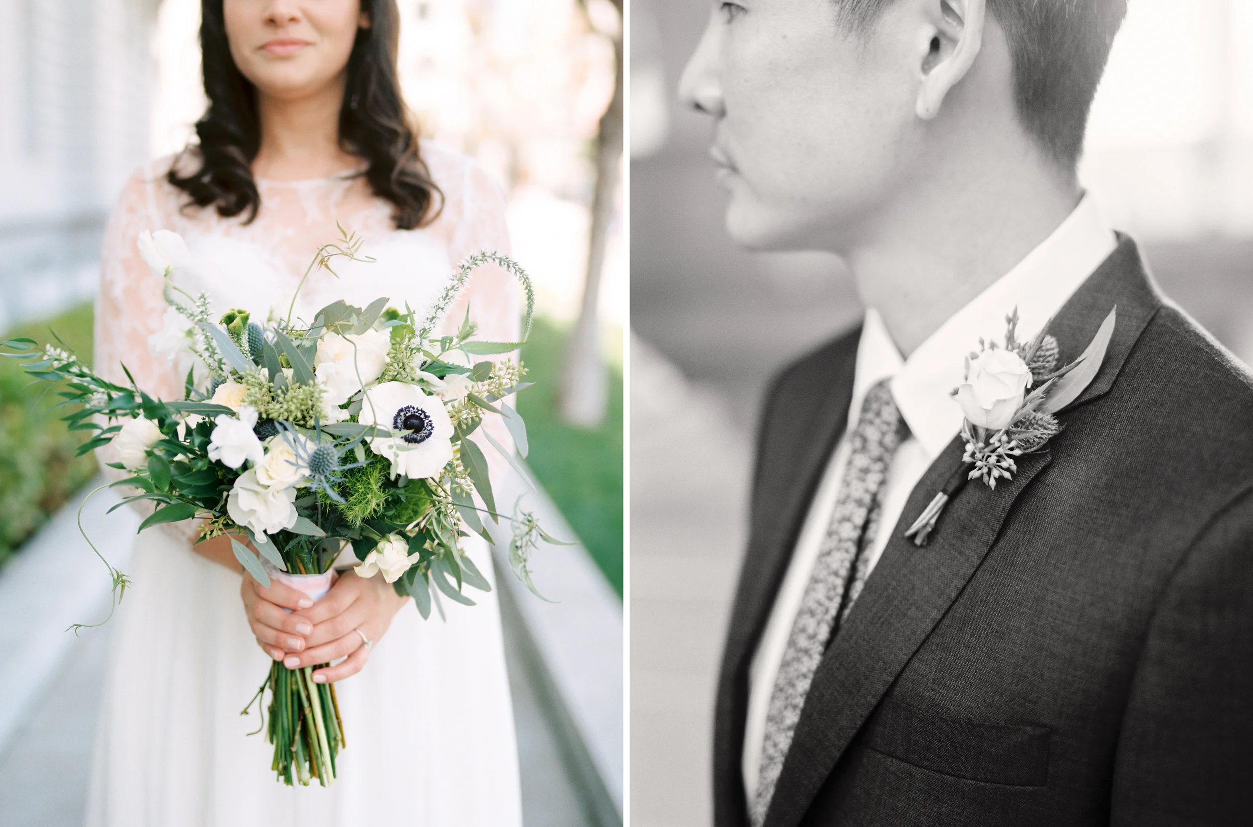 One of my favorite San Francisco pairings is a ceremony at City Hall and intimate reception at the Wayfare Tavern. You can't beat the light on the 4th floor North Gallery in City Hall. The warm sun that hits the Wayfare Tavern in the afternoon is a close second. Photographing this sweet and stylish couple was such a treat!